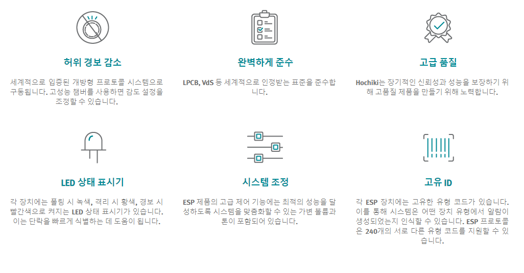 Hochiki의 다양한 화재 감지 및 경보 장비는 최고의 국제 표준에 따라 설계 및 제조되어 비교할 수 없는 신뢰성의 솔루션을 제공합니다.